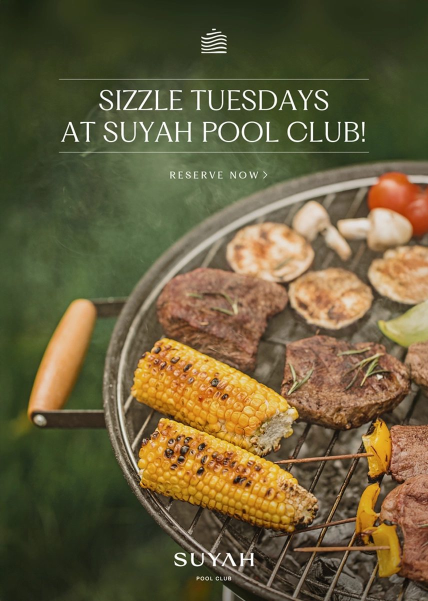 Every Tuesday, we bring a delicious twist to your day at the unique atmosphere of Suyah Pool Club. Guests can savor a carefully prepared barbecue menu featuring a variety of meats, chicken, and fresh vegetables, all accompanied by relaxing poolside vibes and great music.