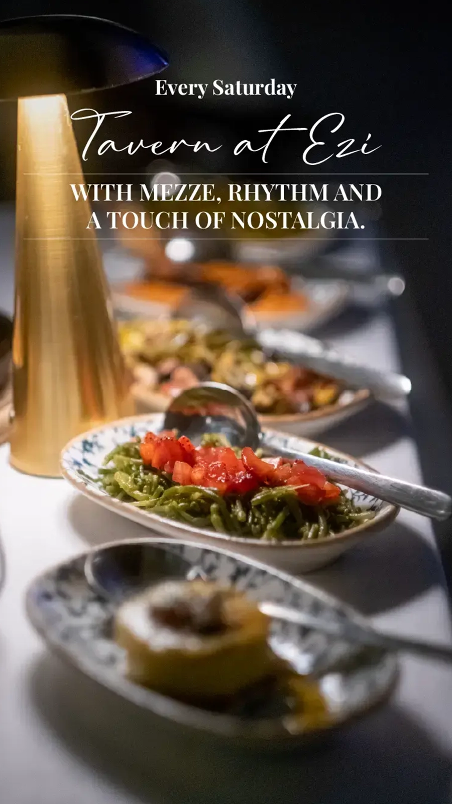 Every Saturday evening, we invite you to join us at Ezi Restaurant for our tavern nights; in our elegant ambiance, you can choose your favorite mezes from our rich buffet, enjoy special selections served to your table on stylish trolleys—complete with a curated collection of wines and rakı on the lower shelf—all designed to offer you a truly enjoyable evening. At the entrance, you can browse our fresh fish display to handpick your seafood, and throughout the night, complement your meal with hot appetizers and fresh salads. Accompanied by music inspired by traditional Istanbul taverns and Aegean melodies, this unique atmosphere is here to enrich your conversations and your evening. We take great pleasure in offering the same care, the same flavors, and the same joyful experience every Saturday.